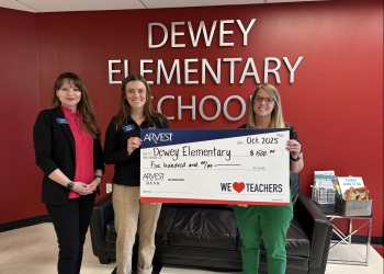 Arvest Bank gifted Jodi Beffer, a third grade teacher at Dewey Elementary School, $500 during the bank’s “We Love Teachers” initiative. The initiative is designed to help with purchasing school supplies for classrooms.