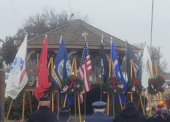 Bartlesville’s Wreaths Across America ceremony was held Saturday morning at White Rose Cemetery, honoring local veterans with a public remembrance event. Due to overcrowding and a potential fire hazard, the ceremony was moved from the mausoleum to the cemetery gazebo at the request of the fire marshal.