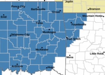 The National Weather Service Office in Tulsa says total snow accumulations of 4 or more inches are likely across portions of eastern Oklahoma with a glaze of ice possible near the Red River along with accumulating sleet and snow.  Winds could also gust near 35 mph during the day Friday.