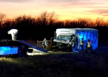 OHP says the driver of the bus was transported to an Oklahoma City metro hospital with injuries and two students also sustained minor injuries, which were treated at the scene.