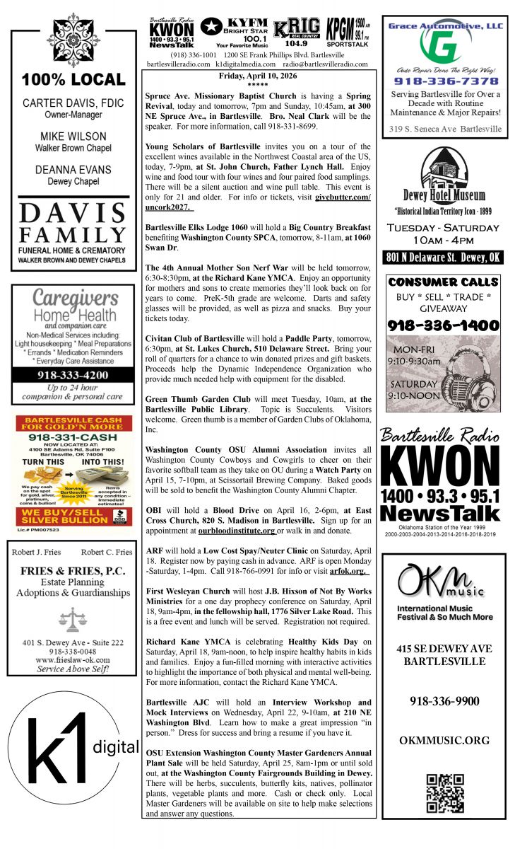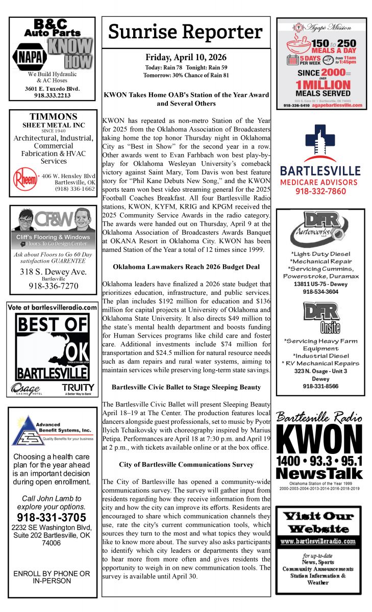 Bartlesville Radio: The area’s best source for news, weather and sports!